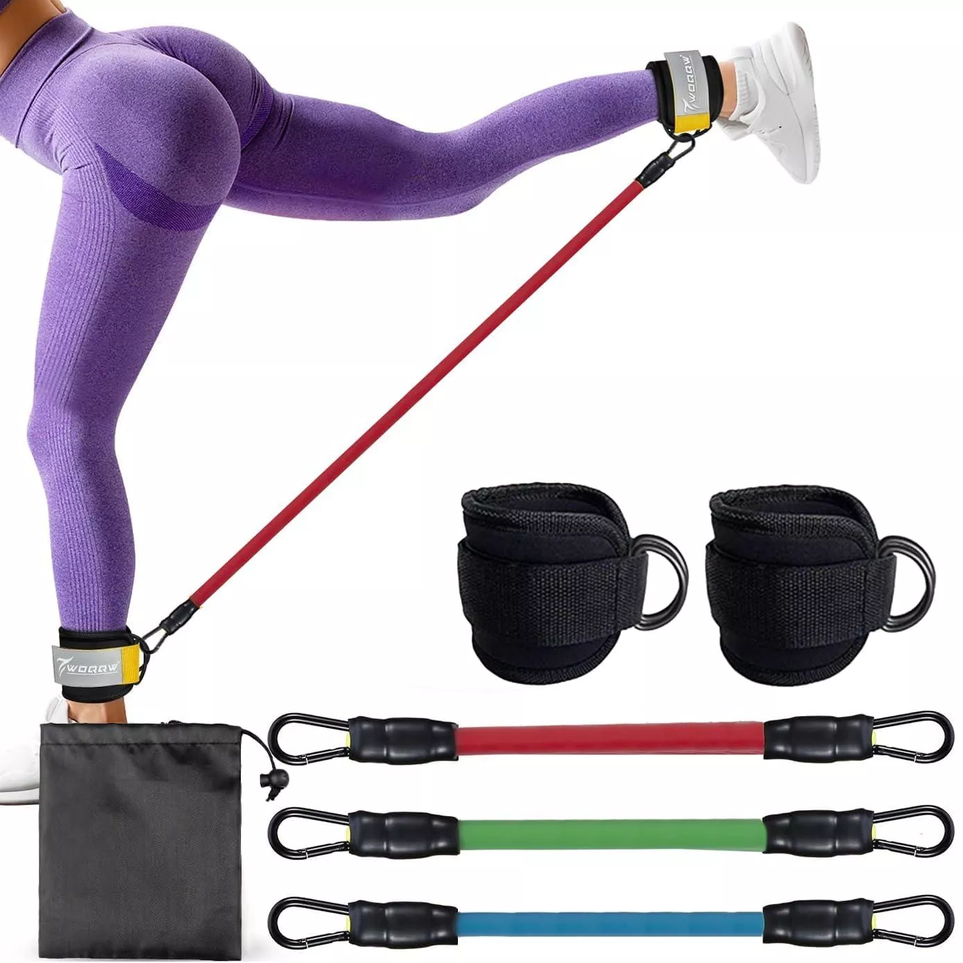 Made from high-quality TPE (thermoplastic elastomer), the bands offer excellent elasticity and resilience, while the adjustable ankle straps ensure a snug, secure fit during every movement. With their compact and lightweight design, you can easily pack them in your gym bag or travel case to stay consistent with your training, no matter where life takes you.